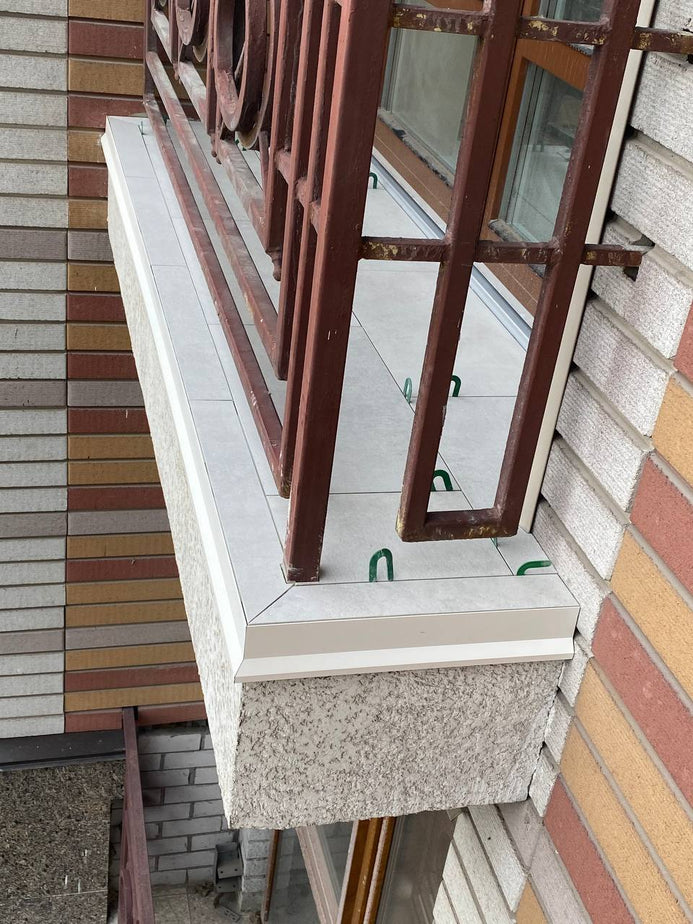 Una soluzione professionale per una finitura elegante e durevole del bordo di una terrazza o di un balcone durante la posa di piastrelle in gres porcellanato.