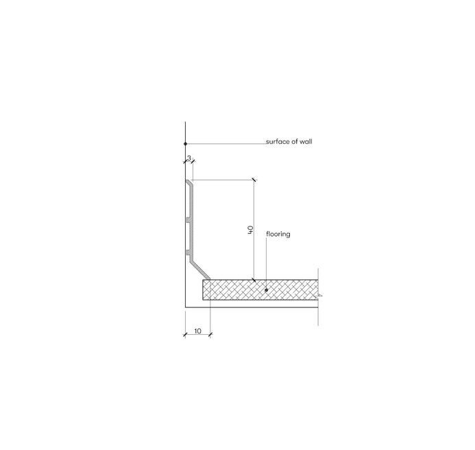 Aluminiowa listwa przypodłogowa (cokołowa) P-3-40, montowana na powierzchni.