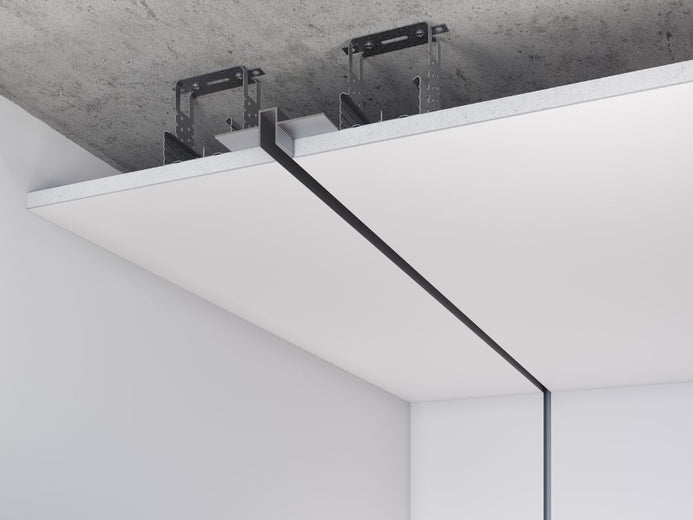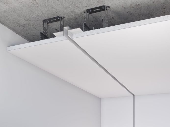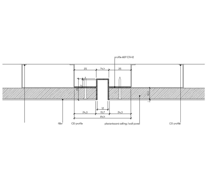 Profile aluminiowe CR-12 umożliwiają łatwe i szybkie wykonanie szczeliny cieniowej między dwoma płytami gipsowo-kartonowymi na suficie lub ścianach, tworząc linie cienia.